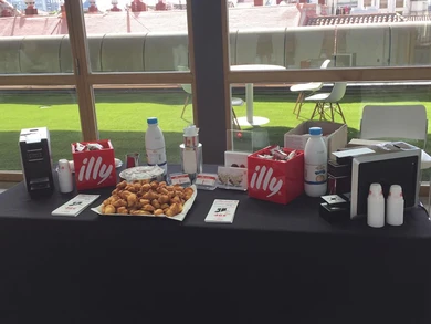 Ofrecemos un exclusivo servicio de café illy espresso y bollería recién horneada adaptados a cualquier necesidad, tanto pequeños desayunos de negocios hasta grandes coffee breaks de eventos multitudinarios.