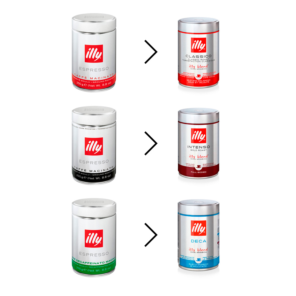 Estamos de estreno. Incorporamos nuevos colores a los productos illy en todas las categorías. Se mantiene el color rojo para el tueste clásico, mientras que el tueste intenso cambia de negro a granate y el descafeinado de verde a azul. Ya disponibles en café en grano, café molido, cápsulas iperespresso y monodosis. En breve disponible en el resto de los formatos.
