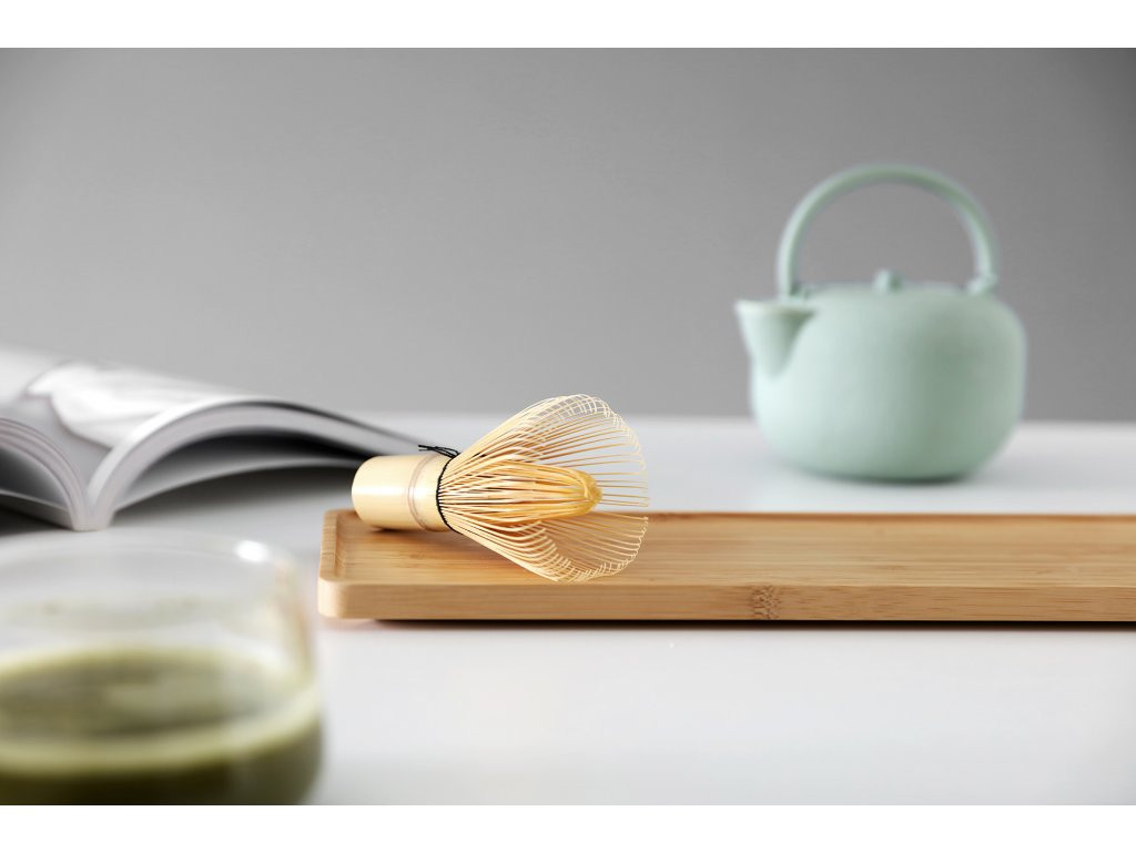 El batidor de té permite mezclar polvo de matcha, agua y aire en una agradable bebida espumosa, liberando aromas y esencias en la espuma de la superficie.