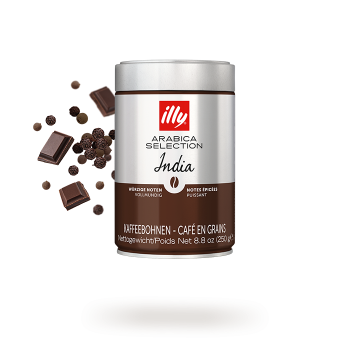 La lata de Café Illy en grano India de 250 grs es exclusivamente blend Illy, 100% arábica.